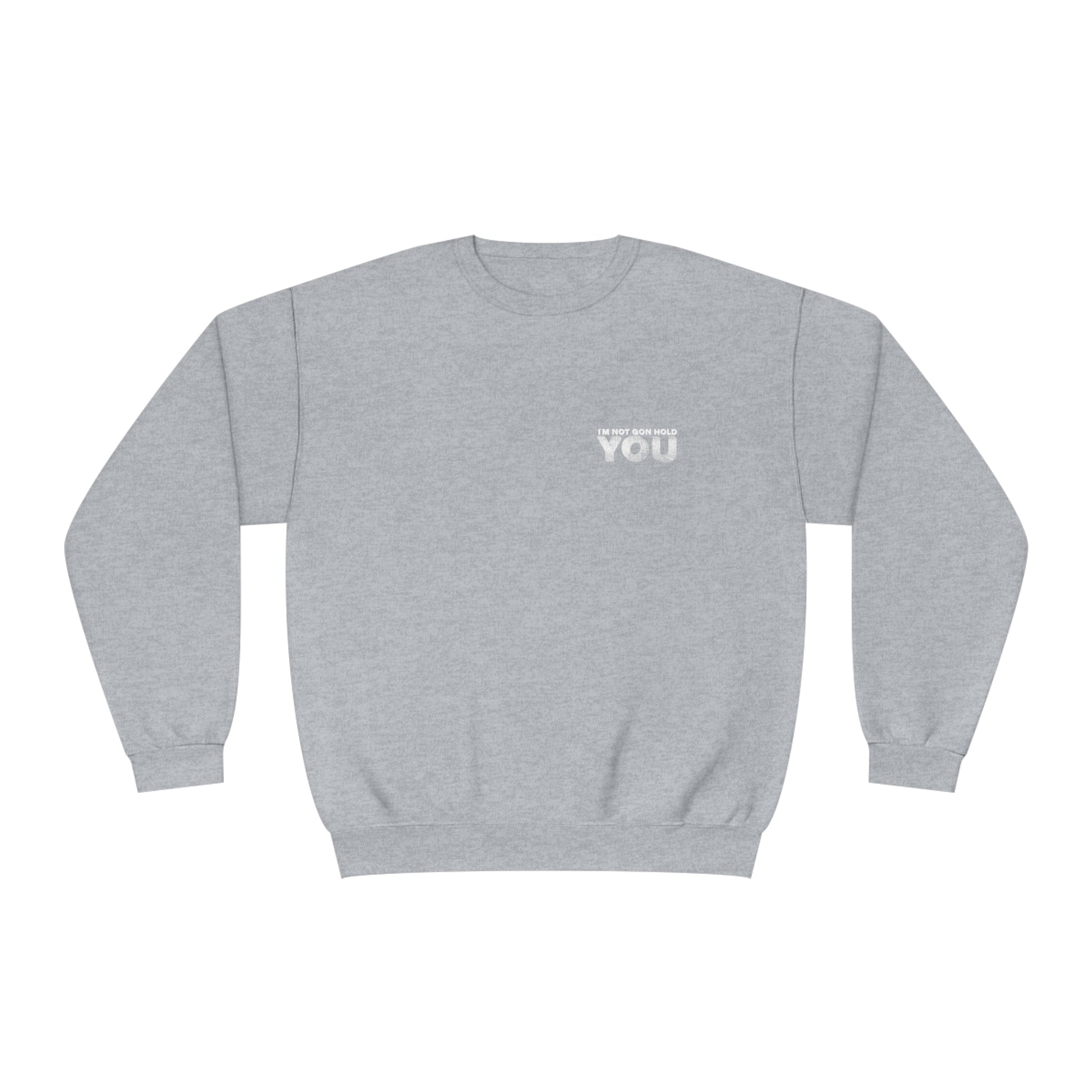 Stay cozy and stylish with the INGHY Crewneck Sweatshirt. Made of 7.5 oz ring-spun cotton and polyester, this sweatshirt features the iconic "I'm not Gon Hold You" logo. With its high quality fabric, it's perfect for everyday wear.