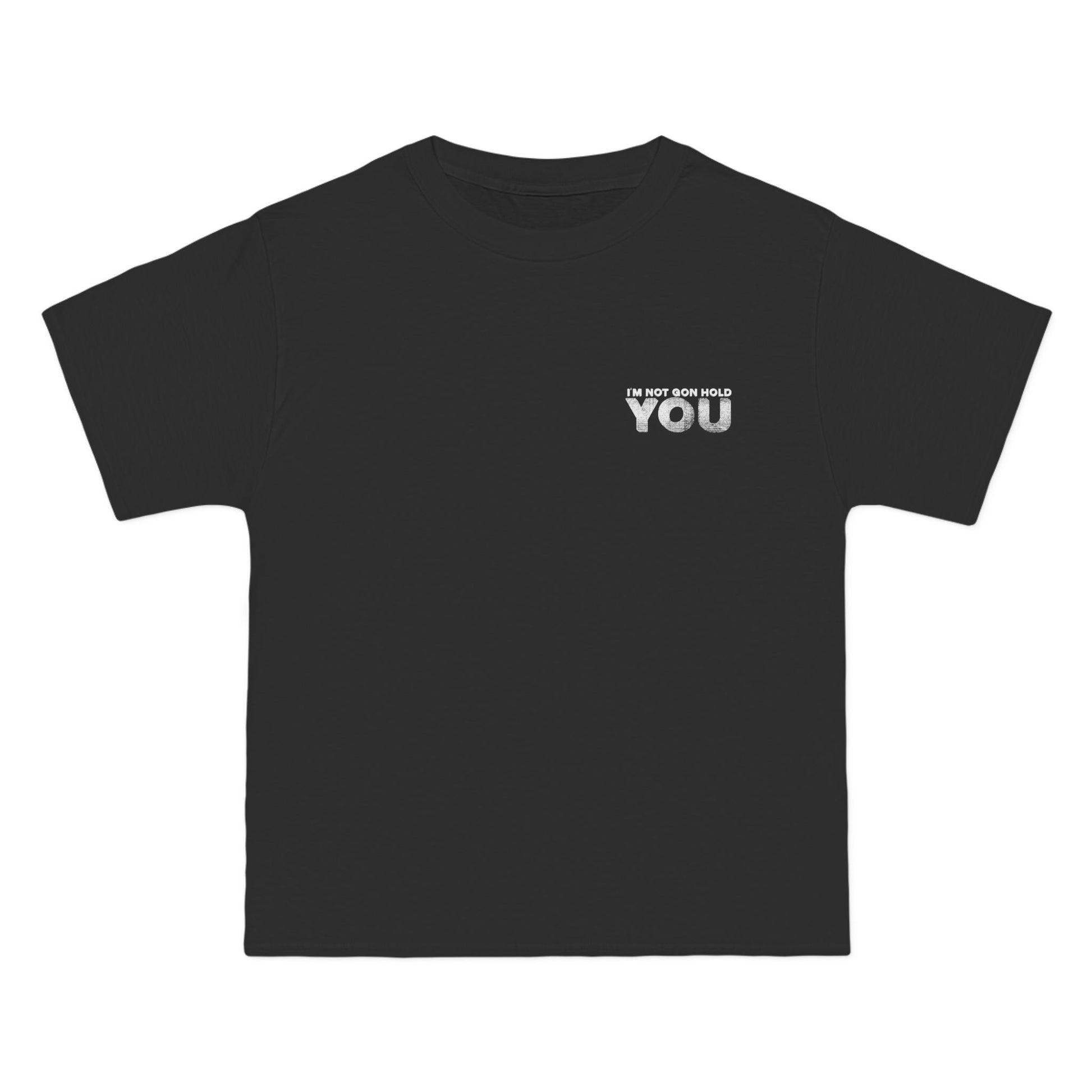 "Constructed with 100% cotton and a 6 oz./yd² (US) or 10 oz./L yd (CA) weight, the INGHY Crewneck Tee offers a heavyweight feel for ultimate comfort and durability. Featuring the iconic "I’m Not Gon Hold You" logo, this tee is perfect for fans of the brand or those looking for a high-quality basic tee."