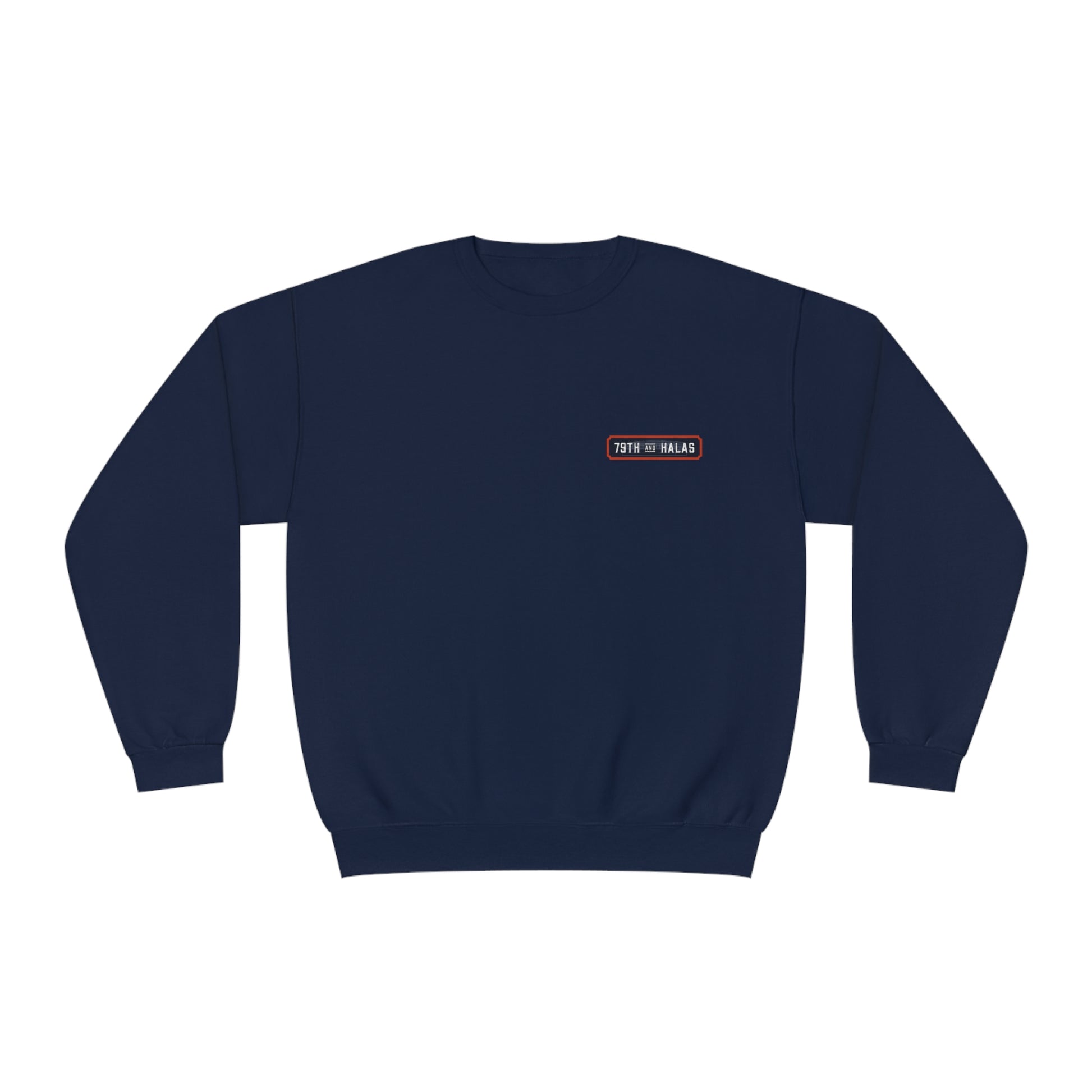 Stay cozy and stylish with the 79th & Halas Crewneck Sweater. Made of 7.5 oz ring-spun cotton and polyester, this sweatshirt features the iconic "79th & Halas" logo. With its high quality fabric, it's perfect for everyday wear.