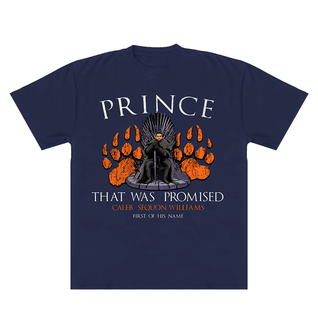 7.5 oz, 100% cotton, oversized/relaxed fit with slight drop shoulder tee, streetwear fit, heavy duty knitting. This tee features our brand new “Prince That Was Promised” design. Paying homage to our future King Of The North this tee is perfect to showcase your Bears fandom throughout the city and abroad.